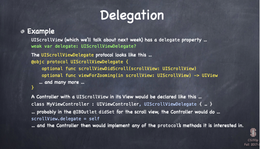 즉, 프로토콜 선언 시 프로토콜 이름 앞에 @objc 키워드와 함수 앞에 @objc optional 키워드를 붙이면 선택적으로 구현한다는 뜻입니다.(단, 선택적 프로토콜 사용시 프로토콜을 채택한 객체는 Class만 가능하며 NSObject를 무조건 상속받은 상태이여야 합니다.)